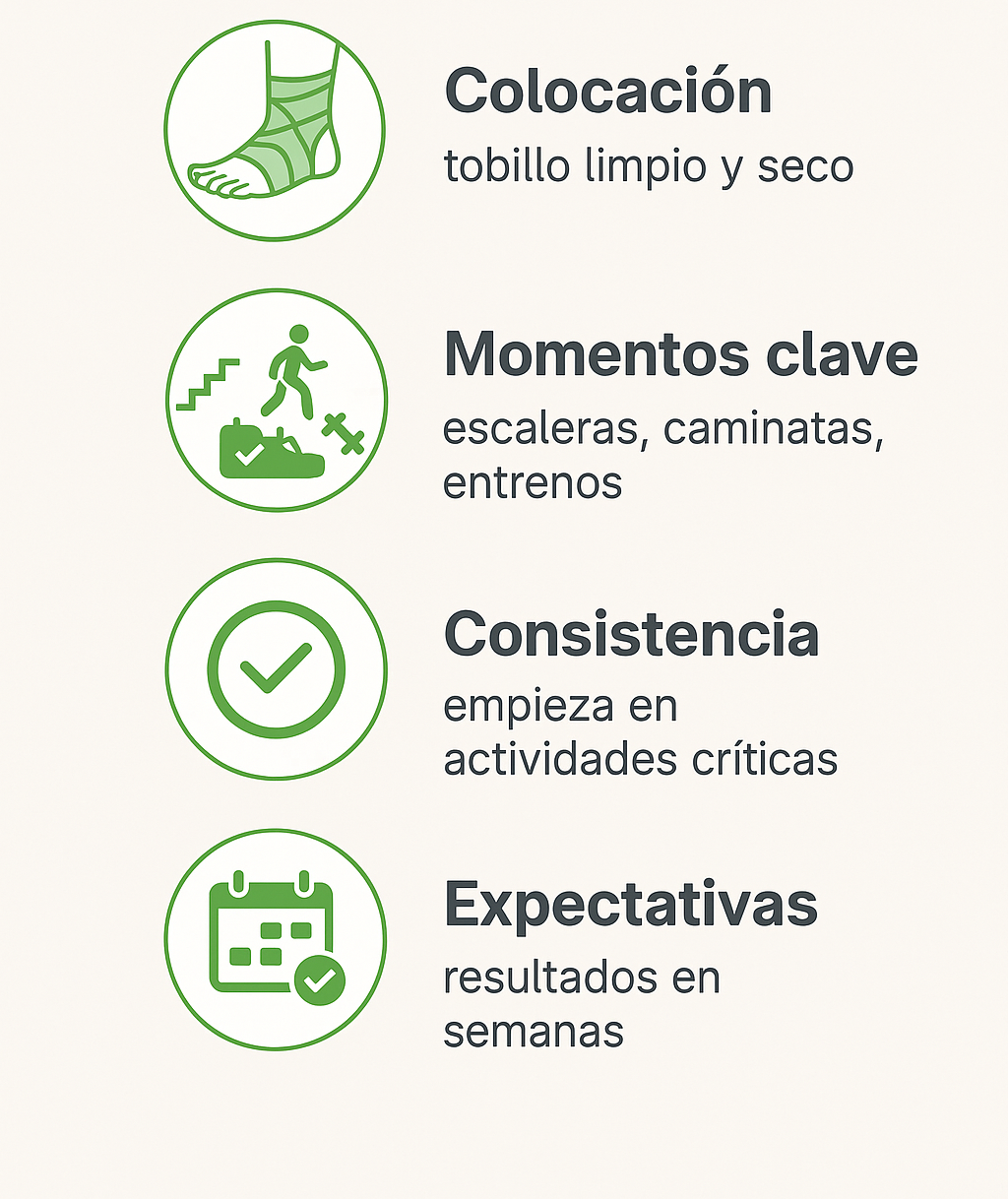 Conclusión: lo barato alivia un rato, pero no estabiliza. Si quieres moverte con seguridad, la tobillera de compresión con soporte lateral es la opción que ataca la causa del problema.